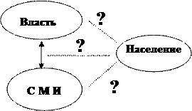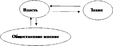 Д. Муратов, представляющий СМИ по отношению к Власти, сказал: " Не ври, не воруй и дай хороший информационный повод". Власть ответила: " Мы всех пригласили, мы всем дали материалы, все остались довольны". Таким образом и в таком контексте выстраивались вчера взаимоотношения между этими двумя элементами профессиональной деятельности. И включение сюда третьего элемента не происходило. Хотя на самом деле в вашей профессиональной деятельности, во взаимодействии двух элементов – Власти и СМИ – этот третий элемент должен присутствовать. Я попытаюсь найти место, где этот элемент может присутствовать, и показать, как с ним выстраивать взаимодействие. Но прежде чем сделать это, я хочу привести замечательные слова госпожи Тэтчер. В начале 90-х годов в России вышла книга американского журналиста Криса Огдена " Маргарет Тэтчер – женщина и политик", где он задает политику главный вопрос: " Госпожа Тэтчер, каковы основные условия Вашего успеха? " Вы помните, что она – одна из немногих премьер-министров Великобритании – была избрана на этот пост трижды. Более того, она – женщина, трижды избранная премьер-министром Великобритании! Госпожа Тэтчер называла три условия своего успеха, три условия которым она следовала в течение всей своей жизни. Первое. " Никогда, – сказала она, – ни до того, как стала премьер-министром, ни после того, как им стала, я не меняла своей идеологии. Никогда в жизни! Пусть иногда это была самая невыгодная идея, но я её не меняла". Крис Огден приводит пример, когда политик сделал по-другому и как его вышибла из колеи мать-история. Этим политиком, представленным в книжке К. Огдена, сменившим свою идеологию, был господин Горбачёв. Итак, первый элемент взаимодействия, о котором мы говорили в начале, – Власть – в интерпретации госпожи Тэтчер означает: " Я – власть". И это есть совокупность определенных взглядов, определенных действий, направленных на достижение определенных целей. " Моя идеология! " Второе условие успеха, сформулированное госпожой премьер-министр и только транслированное американским журналистом, звучит так: " Я каждый четверг стояла перед Парламентом". Очевидно, мы видим совершенно иное понимание законодательной власти, чем это принято в России. Власть это не есть две ветви власти – законодательная и исполнительная. Власть это есть власть, но есть то, что стоит выше этой власти. И это – Закон. " Я каждый четверг стояла перед Парламентом и вслед за этим, до следующего четверга, каждый день я думала, что я скажу Парламенту". Здесь выстраиваются принципиально иные отношения, чем мы себе представляем, глядя на схему 1.