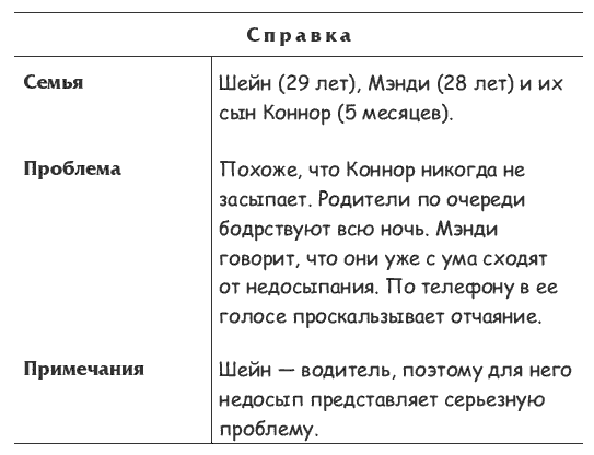 После того как они выпили кофе, ситуация немного улучшилась. Выяснилось, что в первые две недели Коннор преимущественно спал, как это и бывает с новорожденными. Он спал почти все время, когда его не кормили. И когда стало казаться, что растить ребенка — не такая уж плохая штука, маленький Коннор проснулся. С этого момента вся их жизнь превратилась в череду несчастий. Единственный способ, каким его можно было уложить спать, заключался в том, чтобы посадить его в сумкукенгуру для переноски детей и расхаживать по всему дому. Это действительно был единственный способ, что для них оказалось настоящим кошмаром. Они носили ребенка попеременно, подобно тому как носильщики-шерпы по очереди переносят грузы от одного лагеря альпинистов к другому.