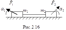 Задача 12. Два груза связаны шнуром, перекинутым через блок. Масса первого груз EMBED Equation.3 = 10 кг, масса второго EMBED Equation.3 = 5 кг. В какую сторону будет двигаться система грузов (рис.2.14)? EMBED Equation.3 = 30(, EMBED Equation.3 = 53(. Определить ускорение системы. Трением пренебречь. EMBED Equation.3 .