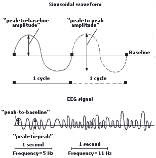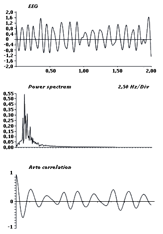 | Преобразование Фурье позволяет преобразовать волновой паттерн фоновой ЭЭГ в частотный и установить распределение мощности по каждой частотной составляющей. С помощью преобразования Фурье самые сложные по форме колебания ЭЭГ можно свести к ряду синусоидальных волн с разными амплитудами и частотами. На этой основе выделяются новые показатели, расширяющие содержательную интерпретацию ритмической организации биоэлектрических процессов. Например, специальную задачу составляет анализ вклада, или относительной мощности, разных частот, которая зависит от амплитуд синусоидальных составляющих. Она решается с помощью построения спектров мощности. Последний представляет собой совокупность всех значений мощности ритмических составляющих ЭЭГ, вычисляемых с определенным шагом дискретизации (в размере десятых долей герца). Спектры могут характеризовать абсолютную мощность каждой ритмической составляющей или относительную, т.е. выраженность мощности каждой составляющей (в процентах) по отношению к общей мощности ЭЭГ в анализируемом отрезке записи.