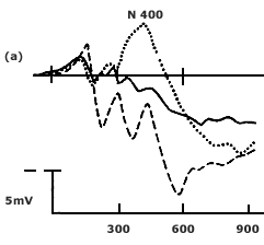 Это, однако, не единственная лингвистическая задача в электрофизиологических исследованиях, где был выявлен негативный информационный компонент N4. Подобный компонент был зафиксирован в задачах, когда надо было дифференцировать семантические классы, наборы слов или решать, относится ли данное слово к определенной семантической категории. Называние слов и картинок, принятие лексического решения, лексические суждения - все эти задачи сопровождаются появлением хорошо выраженного негативного колебания с латентным периодом приблизительно 400 мс. Есть также данные о том, что этот компонент регистрируется и в тех случаях, когда требуется оценить степень соответствия или рассогласования слов не только по семантическим, но и по физическим характеристикам. По-видимому, совокупность компонентов N4 отражает процессы анализа и оценки лингвистических стимулов в разных экспериментальных задачах.