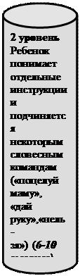 | Ситуативное понимание обращенной речи, предметно-действенное общение со взрослым, использование 1-2 лепетных слов, понятных при соотнесении с ситуацией