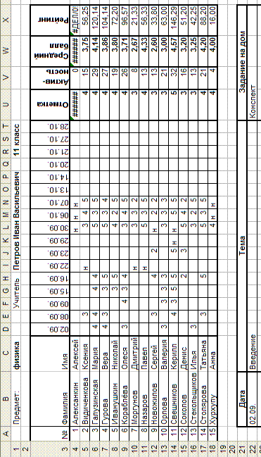 2.1. Для вычисления суммы используйте функцию СУММ из категории Математические, для вычисления среднего – функцию СРЗНАЧ из категории Статистические. 2.2. Для автоматизации выставления отметок по количеству набранных баллов можно использовать функции ЕСЛИ и И из категории Логические. Например, если количество набранных баллов занесено в ячейку С4, то в ячейке D4 можно выставить соответствующую отметку, введя следующую формулу: =ЕСЛИ(И(C4> =0; C4< =2); 2; ЕСЛИ(C4< =6; 3; ЕСЛИ(C4< =10; 4; ЕСЛИ(C4< =14; 5; " -")))). Для выделения цветом содержимого нужных ячеек можете использовать условное форматирование (Формат - Условное форматирование). Автоматизировать процесс подсчета “двоек”, “троек”, “четверок” и “пятерок” можно с помощью функции СЧЁТЕСЛИ из категории Статистические. Например, если выставленные отметки находятся в диапазоне D4: D27, то в выбранной ячейке можно подсчитать количество “пятерок” по следующей формуле: =СЧЁТЕСЛИ(D4: D27; 5). Количество других отметок подсчитывается аналогично. Успеваемость рассчитывается как отношение количества положительных отметок (“3”, “4” и “5”) к количеству всех отметок, выраженное в процентах. Качество - это отношение количества хороших и отличных отметок (“4” и “5”) к количеству всех отметок, выраженное в процентах. Для выражения успеваемости и качества в процентах не надо умножать соответствующие отношения на 100. Достаточно установить процентный формат для ячеек, в которых рассчитаны эти отношения. Результат выводите с точностью до одного-двух десятичных знаков. Подсчитывая успеваемость и качество, не учитывайте отсутствовавших на контрольной работе учеников! Итоги обработки данных могут быть представлены следующим образом. В классе всего: Писали работу: Из них на: “5” – “4” – “3” – “2” – Успеваемость – Качество – Рядом можно расположить диаграмму. Не забудьте сохранить результаты своей работы в папке Мои документы. 2.3. Автоматизироватьподсчет количества испытуемых, имеющих IQ определенного уровня (высокого, среднего, ниже среднего, низкого), можно, например, с помощью функции ЧАСТОТА из категории Статистические. Внимательно изучите Справку по этой функции (особенно пример из справки). Можете также воспользоваться функцией СЧЁТЕСЛИ, применение которой рекомендовалось в задании 2.2. Размах экспериментальных данных определите как разность наибольшего и наименьшего значений IQ из множества зафиксированных. Для определения наибольшего и наименьшего значений воспользуйтесь функциями МАКС и МИН из категории Статистические. Для определения среднего, дисперсии и стандартного отклонения данных в конкретной выборке используйте функции СРЗНАЧ, ДИСПР и СТАНДОТКЛОНП из категории Статистические. 2.4. Для вычисления среднего балла воспользуйтесь функцией СРЗНАЧ из категории Статистические, для выставления результирующей отметки – функцией ОКРУГЛ из категории математические. Страничка журнала может быть, например, такой, как представлено на стр. 23. Здесь сумма баллов, набранных учеником, названа " Активность" (см. [1]). Это не вполне корректно, лучше написать просто " Сумма баллов".