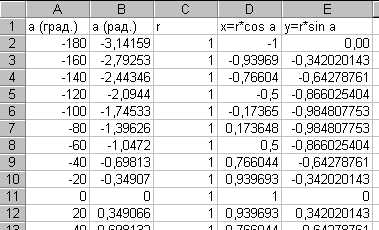 Уравнения (1) называются параметрическими. Для выполнения задания используйте формулы (1). Можете организовать следующую расчетную таблицу: