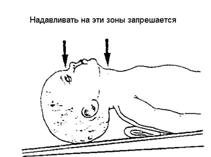 · Не забудьте, что у новорожденного шея короткая, толстая и более хрупкая – будьте осторожны, запрокидывая его голову. · Не надавливайте на горло (трахею). Это может перекрыть дыхательные пути (рис.3.2.) · Не допускайте, чтобы пальцы вашей руки располагались у глаз ребенка (рис.3.2.)