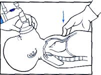 4. Отметьте на ребенке зону, где будут проводиться компрессии. 5. Предпочтительный метод проведения непрямого массажа сердца — (большими пальцами обеих рук) (двумя пальцами одной руки). 6. Если вы предполагаете, что ребенку потребуется введение медикаментов через пуповину, то легче будет проводить непрямой массаж сердца методом (больших пальцев обеих рук) (двух пальцев одной руки). 7. Правильная глубина прогиба при компрессии грудной клетки приблизительно равняется