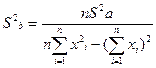 где –n- число экспериментальных точек. Статистический анализ уравнений регрессии Статистический анализ уравнений регрессии заключается в проверке адекватности полученного уравнения и значимости коэффициентов регрессии. Он дает возможность найти пределы измерения углового коэффициента и отрезка на оси ординат для линии регрессии, а исследование адекватности позволяет оценить степень отклонения экспериментальных точек от расчетной линии. Дисперсия адекватности уравнения регрессии S2ад характеризует меру отклонения расчетных данных Ур, полученных по уравнению, от реальных экспериментальных результатов уi для i-й точки, в которой произведено измерение. Значение S2ад находят по формуле: S2ад = где (n-2)=f – число степеней свободы. Дисперсии коэффициентов уравнения регрессии (5) находят из выражений:
