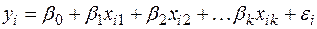 После того как с помощью корреляционного анализа выявлено наличие статистически значимых связей между переменными и оценена степень их тесноты, обычно переходят к математическому описанию конкретного вида зависимостей с использованием регрессионного анализа. С этой целью подбирают класс функций, связывающий результативный показатель Функция регрессии – функция Уравнение регрессии показывает ожидаемое значение зависимой переменной По количеству включенных в модель факторов модели делятся на однофакторные (парная модель регрессия) и многофакторные (модель множественной регрессии), а по виду функции Модель множественной линейной регрессии имеет вид