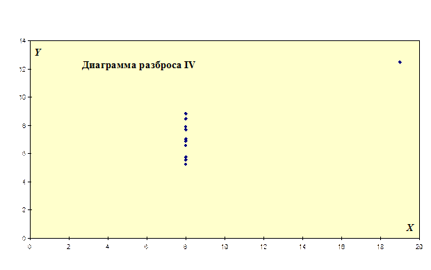 Далее для каждого набора (I - IV) приведены диаграммы разброса и графики остатков, свидетельствующие о существенном их различии.