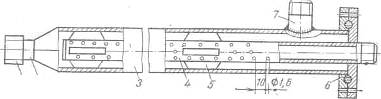 Рис. 3.6 Аэратор. 1 - гайка под трубы; 2 - переводник; 3 - корпус; 4 - труба для воздуха; 5 - центратор; 6 - фланец с прокладкой; 7- труба для кислотного раствора.[2]