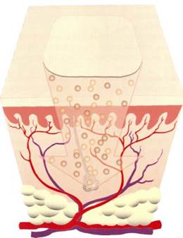 • мигрень с очаговой неврологической симптоматикой; • период лактации; • заболевания кожи; • повышенная чувствительность к компонентам препарата. Недопустимо применение пластыря на область молочных желез, а также на гиперемированные или поврежденные участки кожи. Механизм контрацептивного действия накожного пластыря обусловлен подавлением овуляции и повышением вязкости шеечной слизи. Установлено, что ЕВРА подавляет овуляцию так же эффективно, как и комбинированные оральные контрацептивы. О высокой приемлемости трансдермальной системы ЕВРА свидетельствует целый ряд последних исследований. Хорошие фармакокинетические свойства трансдермального пластыря позволяют поддерживать эффективный уровень гормонов в различных условиях жизни женщины. Преимущества: • длительная неежедневная контрацепция; • выделение гормонов по биологическому градиенту и, следовательно, отсутствие колебаний уровня гормонов на протяжении суток; • отсутствие необходимости ежедневного самоконтроля за использованием контрацептивного средства; • непероральный путь введения; • отсутствие эффекта первичного прохождения через желудочно-кишечный тракт и печень; • быстрое восстановление фертильности после отмены. постоянную и равномерную доставку гормонов в течение недели. Когда пластырь наклеивается на кожу, активные ингредиенты начинают диффундировать непосредственно через кожу в кровоток со скоростью, регулируемой мембраной. Этот важный фактор, который помогает избежать или снизить ряд неблагоприятных эффектов, возникающих при других способах применения контрацепции. Накожная система обеспечивает устойчивое, продолжительное высвобождение активных веществ и служит реальной альтернативой для женщин, которым сложно ежедневно помнить о приеме таблеток. Активные гормоны, содержащиеся в пластыре ЕВРА, проникают через кожу в капилляры и затем в системный кровоток (см. рис. 2.19). Большим преимуществом пластыря является то, что заболевания ЖКТ (рвота, диарея) не препятствуют введению препарата и не влияют на его эффективность.