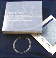 Рис. 2.21. НоваРинг. После создания НоваРинга было проведено более 10 крупномасштабных многоцентровых исследований в Европе и Северной Америке при участии более чем 2, 5 тыс. женщин, обобщены данные по результатам применения НоваРинга в течение 20 тыс. циклов. Исследования предусматривали изучение в первую очередь контрацептивной эффективности, приемлемости и безопасности НоваРинга, изучение фармакокинетики и фармакодинамики препарата, влияния на гемостаз, углеводный и липидный обмен, функцию яичников, микробиоценоз влагалища и шейку матки (Novak A. et al., 2001; Magnusdottir S. et al., 2002). Состав НоваРинга НоваРинг представляет собой эластичное прозрачное кольцо, изготовленное из синтетического гипоаллергенного материала эватана. Диаметр кольца 54 мм, толщина в сечении 4 мм. Каждое кольцо содержит 2, 7 мг этинилэстрадиола и 11, 7 мг это-ногестрела. Этинилэстрадиол является полусинтетическим эстрогеном и входит в состав всех современных комбинированных оральных контрацептивов. Этоногестрел — высокоселективный гестаген последнего поколения, является биологически активным метаболитом дезогестрела. За счет градиента концентрации НоваРинг начинает действовать только во влагалище, и необходимым условием для начала выделения гормонов из мембраны кольца является температура тела. Сложная система мембран позволяет выделяться строго определенному количеству гормонов — ежедневно в непрерывном режиме выделяется 15 мкг этинилэстрадиола и 120 мкг этоногестрела.