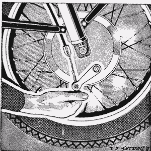 Задний амортизатор. Этот амортизатор обладает высокой амортизаторной эффективностью, позволяет переставление твердой пружины, и составлен так, что не нужно дополнять амортизаторное масло. Однако, рекомендуем произвести замену масла после пробега 10000—15000 км. Возможные ремонты, мытье и замену масла (50 см5) рекомендуем поручать специальной мастерской. Колесо (подшипники) смажьте после снятия пылеуловителей смазкой АВ 2. Вместе с тем промажьте подшипник задней цепной звездочки после предварительной разборки (см. часть III, 4 — «Выемка задней цепной звездочки»). Задняя качающаяся вилка. Палец задней качающейся вилки автоматически смазывается маслом из коробки передач. Первичная цепь полностью закрыта крышкой коробки и работает в маслянной ванне Она не нуждается ни в каком уходе В случае износа.нужно ее заменить При замене нужно разобрать сцепление (рекомендуем выполнять эти работы в специальных мастерских, в которых имеются соответствующие инструменты). Вторичная цепь требует ухода после пробега 1000 км. Снятую цепь нужно промыть в керосине. После просушки положите цепь примерно на 3 часа в слегка разогретую смазку, потом выньте и после отекания излишней смазки установите на место. Демонтаж и монтаж кожуха цепи описан в части III, гл. 3. Генератор. После пробега примерно 3000 км снимите крышку двигателя и смажьте несколькими каплями масла палец (пальцы) коромысел прерывателя (отверткой сначала осторожно подвытащить прерыватель на пальце). Смазывайте осторожно, чтобы излишнее масло не разбрызгивалось на контакты прерывателя. Фетровый съемник кулачка пропитать смазкой АВ 2 Тросы боудена сцепления, переднего и заднего тормоза и газа смазывайте после пробега 3000—5000 км несколькими каплями масла ПП 13