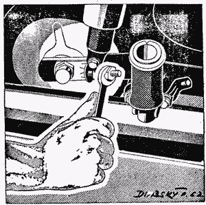 Рис 19 — Натягивание цепи тальком, чтобы камера в местах, смазанных клеем, не прилипла к внутренним стенкам покрышки Покрышку внимательно осмотрите и возможный застрявший гвоздь в покрышке выньте при помощи клещей. Обратный монтаж пневматической шины производится следующим образом. Камеру частично накачать, вложить в покрышку, которая на одном краю осталась в ободе, продеть вентиль через отверстие в ободе и закрепить гайкой (не подтягивать до конца). Потом передеть край покрышки сначала на месте противолежащем вентилю через край обода внутрь, придержать его в углубленном месте обода и монтажным рычагом перетянуть покрышку на обеих сторонах пока не дойдет до вентиля. Эту работу производите осторожно, чтобы не повредить камеру прищемливанием между краем покрышки и обода. Затем проконтролируйте, правильно ли лежит покрышка в ободе, не колеблется. Этот контроль облегчается наличием центровочного кругового выступа на боковинах покрышки, который должен быть по всей окружности одинаково удален от обода. Заклейка камеры клеем — работа временного характера, необходимая во время езды, при случайном наезде на гвоздь. Постоянное исправление лучше всего произведет вулканизационная мастерская. Также и кожух, поврежденный об острый камень или разбитое стекло, хорошо исправит мастерская.
