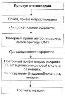 Рис. 3-3. Алгоритм неотложной помощи при стенокардии.
