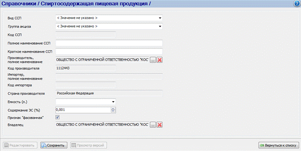 Добавление записи в справочник спиртосодержащей пищевой продукции