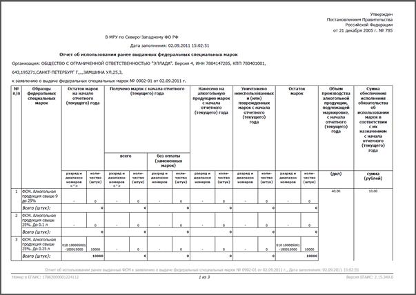 Чтобы распечатать документ, выделите его из списка и нажмите на кнопку Печать. Отчет откроется для предварительного просмотра и выполнения печати (рисунок Рисунок 164). Рисунок 164 – Отчет об использовании ФСМ, печатная форма
