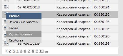 Для редактирования сведений о КК необходимо кликнуть левой кнопкой мыши по иконке Меню и выбрать и появившегося списка «Редактировать». Откроется форма «Редактирование кадастровых объектов»: