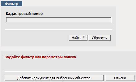 Откроется окно поиска объектов по кадастровому номеру: