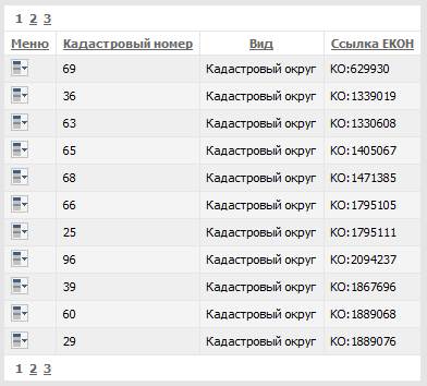 При выборе Кадастровых округов открывается форма: