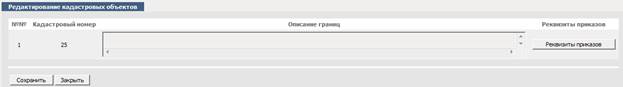 Редактирование «Реквизитов Приказов» описано в пункте 2. «Редактирование сведений о кадастровых кварталах».