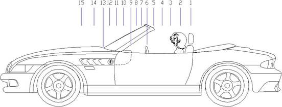 от10 до12 баллов между началом приборной панели и нижней кромкой ветрового стекла