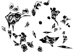 а б Рис. 57. Индикация репродукции вируса в культуре ткани по цитопатическому действию (ЦПД): а – интактная монослойная культура клеток, б – зараженная культура (ЦПД). (Микробиология и иммунология.-Под ред. А.А. Воробьева.-М, Медицина, 1999.-464 с.) К полуперевиваемым культурам относятся диплоидные клетки человека. Они представляют собой клеточную систему, сохраняющую в процессе 50 пассажей (до года) диплоидный набор хромосом. Диплоидные клетки человека не претерпевают злокачественного перерождения и этим выгодно отличаются от опухолевых. Для выращивания вирусов можно использовать культуры тканей любого типа. Доза заражения зависит от цели и назначения опыта. Тканевые культуры используют для выделения новых малоизученных вирусов, когда обычным методом (заражение животных, куриных эмбрионов) невозможно установить вирусную природу возбудителя. Выбор клеточных культур определяется их чувствительностью к отдельным группам вирусов. Различают острую и хроническую инфекции. Острое течение инфекции характеризуется цитопатическим действием (деструктивными изменениями зараженных клеток, завершающихся их гибелью). Хроническая форма репродукции вируса не вызывает быструю гибель клеток, они долгое время остаются жизнеспособными и внешне могут не отличаться от зараженных. Индикацию вирусов в культуре клеток проводят на основании следующих феноменов: 1. Цитопатическое действие (ЦПД) – видимые под микроскопом морфологические изменения клеток, вплоть до их отторжения от стекла, которые возникают в результате внутриклеточной репродукции вирусов (рис. 57). Характер ЦПД при различных вирусных инфекциях неодинаков. При репродукции одних вирусов (парамиксовирусы, герпесвирусы) наблюдается слияние клеток с образованием синцития, других (энтеровирусы, реовирусы) – сморщивание и деструкция клеток, третьих (аденовирусы) – агрегация клеток и т.д. 2. Вирусные включения – скопление вирусных частиц или отдельных компонентов вирусов в цитоплазме или ядре клеток, выявляемые под микроскопом при специальном окрашивании. Включения различаются по величине, форме, численности. Характерные ядерные включения формируются в клетках, зараженных вирусами герпеса, аденовирусами, гриппа, бешенства, оспы и др. 3. Бляшки, или негативные колонии – ограниченные участки, состоящие из дегенеративных клеток, которые вирусы способны образовывать в монослое клеток под агаровым покрытием. Они видны невооруженным глазом как светлые пятна на фоне прижизненно окрашенных нейтральным красным клеток. Одна бляшка соответствует потомству одного вириона. Негативные колонии разных вирусов отличаются по размеру, форме. Бляшкообразование используют для дифференциации, селекции вирусов, а также для определения их концентрации в исследуемом материале. Титр вируса, установленный этим методом, выражают числом бляшкообразующих единиц (БОЕ) в 1 мл. 4. «Цветная» проба. Если вирусы не размножаются в культуре клеток, то живые клетки в процессе своего метаболизма выделяют кислые продукты, что ведет к изменению рН среды и цвета индикатора фенолового красного на желтый. При продукции вирусов нормальный метаболизм клеток нарушается, клетки гибнут, и среда сохраняет свой первоначальный (красный) цвет. Таким образом, красный цвет среды указывает на наличие вируса и прекращение жизнед
