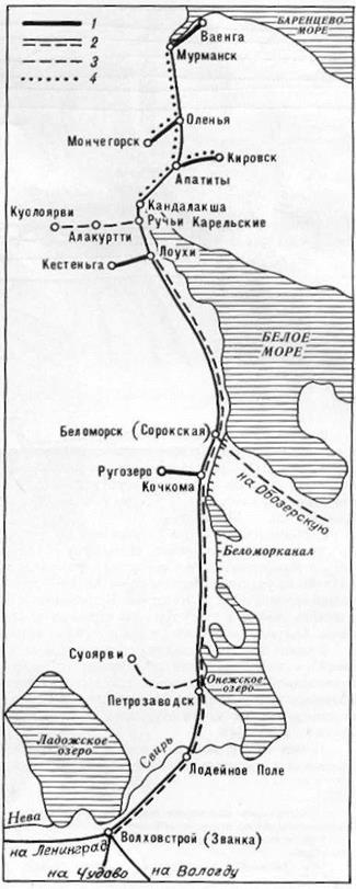 Рис. 2. Схема Мурманской железной дороги, 1940 г.