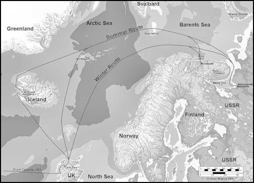 Зимой 1939/40 г. дорога получила значительное развитие в связи с вооруженным конфликтом на границе с Финляндией: началось сооружение железнодорожных подходов к рокадной дороге вдоль границы: Петрозаводск – Суоярви и Ручьи Карельские – Куолоярви, рассчитанных па паровозную тягу. В июле 1940 г. НКПС издал приказ о строительстве вторых путей на участке Волховстрой – Петрозаводск. Работы были рассчитаны на два года. К постройке первой очереди от Лодейного Поля к Петрозаводску приступили сразу же. Обстановка требовала скорейших действий в связи с возросшей военной опасностью для нашей страны. B конце 1940 г. движение поездов по новому двухпутному участку было открыто. К лету 1941 г. достроили мосты через реки Сясь, Пашу, Оять и Свирь. Благодаря усилению провозной способности дороги объем грузовых перевозок в 1940 г. достиг 10, 3 млн т; 70% составляли лес и строительные материалы, минеральные удобрения, продукция целлюлозно-бумажных комбинатов. Дорога стала одной из важнейших магистралей северо-запада страны. Одну из ярких страниц вписали в историю Великой Отечественной войны в Заполярье моряки, портовики, судоремонтники, железнодорожники, участвовавшие в обеспечении перевозок по ленд-лизу. Для доставки грузов Советскому Союзу использовались три основных маршрута: Первый – через Северную Атлантику. Его протяженность 1800–2000 миль. Продолжительность перехода 12–14 суток. По этому пути союзники отправили около 4 млн т груза (22, 7% от общего количества поставок). Второй проходил через Южную Атлантику, Персидский залив и Иран. Он практически начал действовать с мая 1942 года. По этому пути было доставлено более 4 млн т груза (23, 8%). Третий маршрут проходил по Тихому океану. Объем перевозок здесь был наибольшим и составил 8 млн тонн (47, 1%). Остановимся только на краткой характеристике первого маршрута поставок по ленд-лизу. Чем же объясняется чрезвычайная важность северного маршрута? Он являлся самым коротким, значимым было удобство использования незамерзающего Мурманского порта, наличие железной дороги, которая связывала Мурманск с центральными районами. Однако были и серьезные трудности с приемом и доставкой грузов по ленд-лизу. В 10-ти минутах полета от Мурманска базировалась немецкая авиация, подвергавшая город постоянным бомбардировкам. С отражением ее налетов силы ПВО в начале войны не справлялись. Кроме того, линия фронта проходила в 40 км от города, а железную дорогу, связывавшую его со страной, перерезал противник.