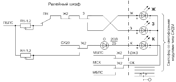 Рис. 51. Схема последовательного соединения блоков БПС для питания удаленных светофоров