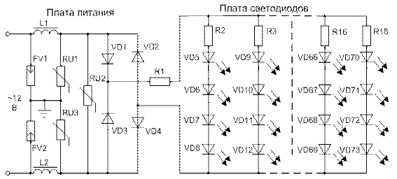 Рис. 54. Электрическая схема светооптической светодиодной системы ЗАО «Кавер-Лайт»