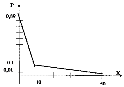 Контроль: 0, 01+0, 1+0, 89=1. Для наглядности закон распределения дискретной случайной величины можно изобразить и графически, для чего в прямоугольной системе координат строят точки (хi, pi), а затем соединяют их отрезками прямых. Полученную фигуру называют многоугольником распределения.