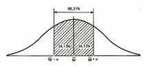 Типичный вид плотности и функции нормального распределения М(Х) = а, Д(Х) = σ. Дисперсия или стандартное отклонение σ характеризует степень сжатия (растяжения) графика нормального распределения, поэтому иногда этот параметр называют параметром масштаба. Чем больше дисперсия нормального распределения, тем «ниже и шире» расположен график нормального распределения. Нормальное распределение играет большую роль в математической статистике, поскольку многие статистические методы предполагают, что анализируемые с их помощью экспериментальные данные распределены нормально. Статистики показали, что при нормальном распределении «большая часть» результатов, располагающаяся в пределах одного стандартного отклонения по обе стороны от средней, в процентном отношении всегда одна и та же и не зависит от величины стандартного отклонения: она соответствует 68% популяции (т.е. 34% ее элементов располагается слева и 34% — справа от средней):