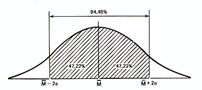 Так же было рассчитано, что 94, 45% элементов популяции при нормальном распределении не выходит за пределы двух стандартных отклонений от средней и что в пределах трех стандартных отклонений умещается почти вся популяция — 99, 73%.