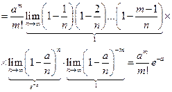 Это распределение однопараметрическое (параметр а). Числовые характеристики распределения Пуассона найдем тоже предельным переходом.