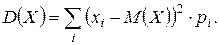 Дисперсия характеризует разброс значений СВ X относительно ее математического ожидания. Из определения дисперсии следуют формулы для ее вычисления. Для дискретной СВ X дисперсия вычисляется по формуле