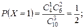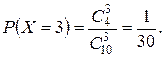 Данное распределение является бимодальным, так как максимальная вероятность p = 0, 3 соответствует двум значениям СВ X. M 0 = 1 или M 0 = 6 3) Найдем вероятность P (2≤ X < 8). При непосредственном вычислении вероятность равна P (2≤ X < 8) = P (X = 2) + P (X = 4) + P (X = 6) = 0, 2 + 0, 1 + 0, 3 = 0, 6 Если используем функцию распределения, то получим тот же результат. P (2≤ X < 8) = F (8) – F (2) = 0, 9 – 0, 3 = 0, 6. Пример 2. В партии из 10 изделий 6 изделий высшего сорта и 4 первосортных. Наудачу выбираются 3 изделия. Составить ряд распределения случайной величины X – числа изделий первого сорта среди отобранных. Найти M (X) и s(X). Решение. Дискретная случайная величина X может принимать следующие значения: x 1 = 0, x 2 = 1, x 3 = 2, x 4 = 3. Распределение СВ X – гипергеометрическое, с параметрами N = 10, M = 4, n = 3. В соответствии с общей формулой (1.31)