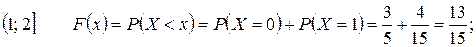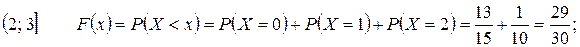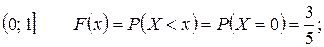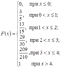 Найдем функцию распределения F (x). Для этого разделим числовую ось на непересекающиеся промежутки возможными значениями случайной величины X и найдем значения F (x) на каждом из промежутков, используя формулу (1.8)