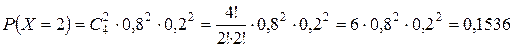 Найдем числовые характеристики СВ X, распределенной по биномиальному закону. M (X) = n × p = 4 × 0, 8 = 3, 2 D (X) = n × p × q = 4 × 0, 8 × 0, 2 = 0, 64