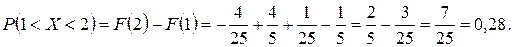3) Вероятность того, что СВ X примет значения, заключенные в интервале (1, 2), по формуле (1.10) равна