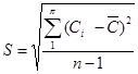 S - стандартное отклонение малой выборки (СКО) Сi - результат единичного (и-того) измерения концентрации.