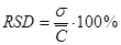 Иногда величину случайной погрешности оценивают относительным стандартным отклонением. Относительное стандартное отклонение RSD - отношение стандартного отклонения к средней концентрации выборки.