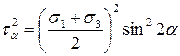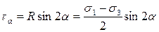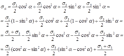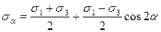что совпадает с полученными ранее формулами (2.2) и (2.3). Таким образом, каждой площадке, наклоненной под углом a к главным площадкам, на круге Мора соответствует определенная точка. Радиус этой точки составляет с осью абсцисс угол 2 a, а ее координаты определяют напряжения на площадке sa и ta.