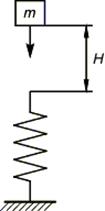 2. Тело массой m падает на невесомую упругую систему с высоты H.
