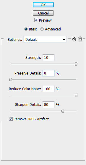 И, наконец, выполняем сведение всех слоев Layer -FlattenImage (Слой - Выполнить сведение), затем применяем фильтр Filter -Noise -ReduceNoise (Фильтр - Шум - Уменьшить шум): (этим мы увеличим резкость эффекта и уменьшим цветовой шум окружности)