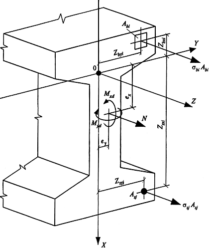 3.1.4.4 При расчете нормальных сечений по прочности (см. рисунок 6) в общем случае используют: