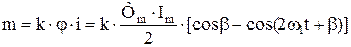 где iи Im – мгновенное и амплитудное значения тока; β – сдвиг по фазе между потоком возбуждения и током в якоре; φ и Фm – мгновенное и амплитудное значения потока; ω 1 – угловая частота тока. Мгновенное значение вращающего момента mхарактеризуется выражением