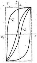 Синхронным гистерезисным называют микродвигатель, вращающий момент которого возникает за счет гистерезиса при перемагничивании ротора. На рис. 2.33 показан гистерезисный микродвигатель Г-201: 1 – статор с двухфазной обмоткой; 2 – ротор; 3 – подшипниковый щит. Ротор гистерезисного двигателя делают сборным (рис. 2.34): 1 – кольцо из магнитотвердого материала; 2 – немагнитная или магнитомягкая втулка; 3 – вал. Для изготовления кольца 1 используют материалы типа викаллоя и альни с широкой петлей гистерезиса. Потери мощности на гистерезис в кольце 1 определяют, как будет показано далее, значение гистерезисного вращающего момента. При ограниченной мощности возбуждения оптимальное по намагничиванию использование магнитотвердого материала кольца и наилучшие энергетические показатели достигаются при определенном соотношении между толщиной кольца и диаметра ротора. Излишнее увеличение толщины кольца, сопровождающееся уменьшением индукции, приводит к уменьшению потерь мощности на гистерезис и момента, а также перерасходу дорогостоящего магнитотвердого материала. Для выяснения природы гистерезисного момента рассмотрим физические процессы, происходящие в роторе описанной конструкции при асинхронном вращении, т.е. когда материал ротора непрерывно перемагничивается (рис. 2.35). Будем считать, что оси м.д.с. F1 и потока Φ 1 статора совпадают. В момент времени, когда вектор вращающегося магнитного потока статора Φ 1 занимает положение А (рис. 2.35, а), элементарные магнитики ротора ориентируются вдоль этого потока.