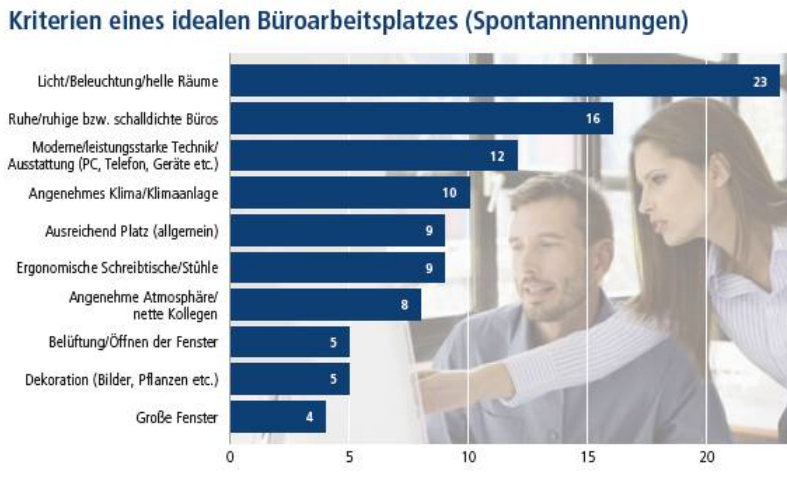 Abbildung 7: Bü rorä ume 5. Sprechen Sie in der Gruppe zum Thema „Idealer Arbeitsplatz“. Tauschen Sie Ihre Meinungen aus. 6. Machen Sie sich mit der Grafik von der Abbildung 8 bekannt. Vergleichen Sie Ihre Erwartungen von einem idealen Arbeitsplatz mit den Daten von dem Schaubild.