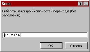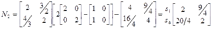 Вона складається як би з чотирьох матриць, де I – одинична, а 0 – нульова матриці. Фундаментальна матриця ланцюга . Фундаментальна матриця ланцюга визначається наступним чином N=(I-Q)-1 (2.9) Елементи матриці показують середню кількість попадань в відповідні стани (номер колонки), якщо рух починати зі стану, що відповідає номеру рядка Інша необхідна інформація обчислюється з наступних формул 1. Дисперсія числа попадань процесу в деякий заданий стан при певному початковому стані: N2=N(2Ndiag–I)–N [1] sqr. (2.10). Елементи матриці показують дисперсію кількості попадань в відповідні стани (номер колонки), якщо рух починати зі стану, що відповідає номеру рядка. 2. Середнє значення та дисперсія числа попадань процесу в заданий нестійкий стан. t2=(2N–I)t-t2; (2.11)де t=Nx, а x – одиничний вектор. 3. Ймовірність того, що процес попаде в заданий поглинаючий стан (номер колонки), якщо він почне рух з заданого нестійкого стану (номер рядка) B=NR. (2.12) Приклад Процес описується наступною матрицею переходів: